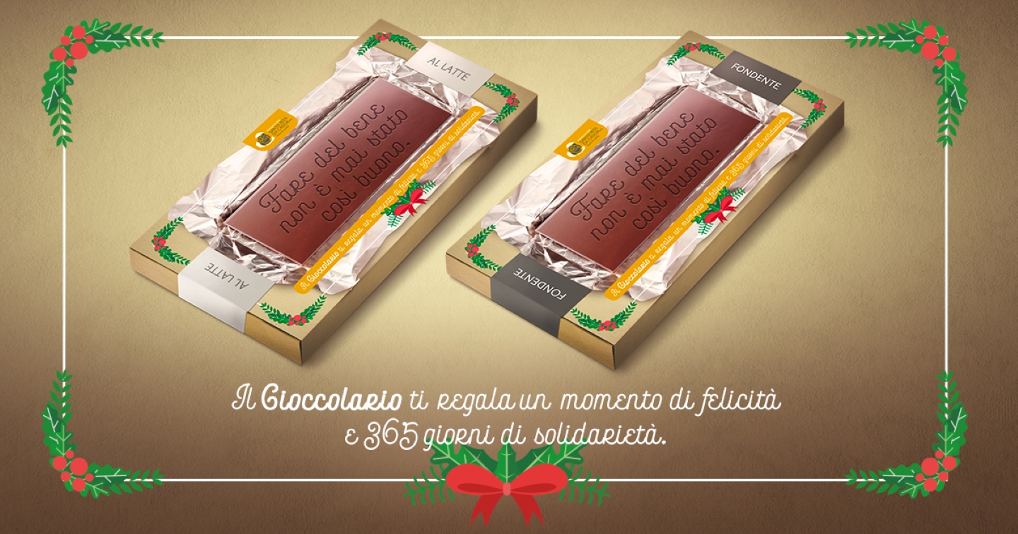 Quest’anno, rendi ancora più dolce il tuo Natale e quello dei tuoi cari, aggiungendo alle feste il gusto unico della solidarietà, con il Cioccolario, la tavoletta di cioccolato, al latte e fondente, che si trasforma in un calendario!