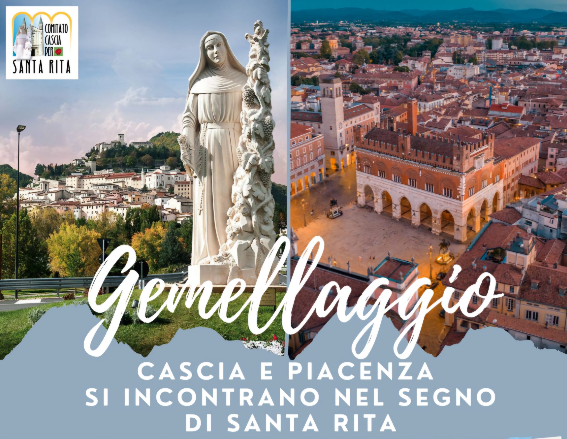 Ogni anno, in occasione del 22 maggio, Cascia unisce la sua voce a quella di una città del mondo in cui è presente la devozione a Santa Rita, per divulgare insieme il messaggio di pace e dialogo incarnato dalla santa degli impossibili. Per celebrare questo legame, che quest’anno unirà Cascia con Piacenza, da venerdì 14 a domenica 16 marzo, sarà ospite nella città la delegazione formata dalla nostra famiglia agostiniana di Santa Rita, guidata da Padre Giustino Casciano Rettore della nostra basilica; dalla Diocesi con il parroco di Cascia Don Davide Travagli; dall’amministrazione comunale con a capo il sindaco Mario De Carolis e dal “Comitato Cascia per Santa Rita”.